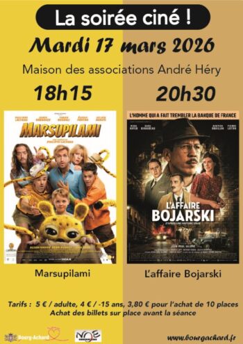 Prochainement La prochaine séance de cinéma aura lieu mardi 17 mars 2026, à la maison des associations André Héry, rue Pierre et Marie Curie. A l'affiche ce ... Bourg-Achard La soirée ciné mardi 17/03