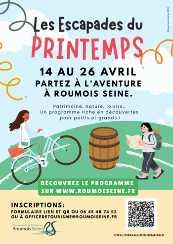 Envie de d'évasion et de découvertes ? Du 14 au 26 avril, partez à l’aventure sur le territoire de Roumois Seine ! Que vous soyez passionné de patrimoine, amoureux de la nature ou adepte de loisirs, nous vous avons concocté un [...] LES ESCAPADES DU PRINTEMPS ARRIVENT !