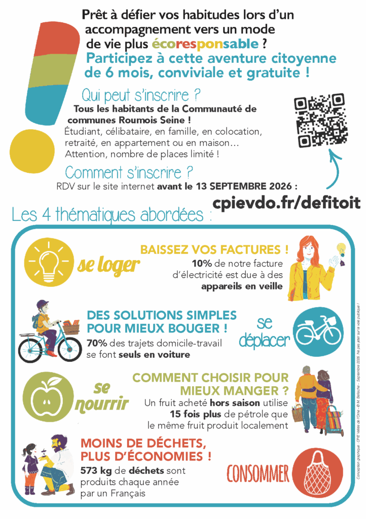 PrĂŞt Ă  dĂ©fier vos habitudes lors d’un accompagnement vers un mode de vie plus Ă©coresponsable ? 🌿 Ce dĂ©fi est ouvert Ă  tous les habitants du territoire : Ă©tudiants, cĂ©libataires, retraitĂ©s, en famille… 👨‍👩‍👧‍👦