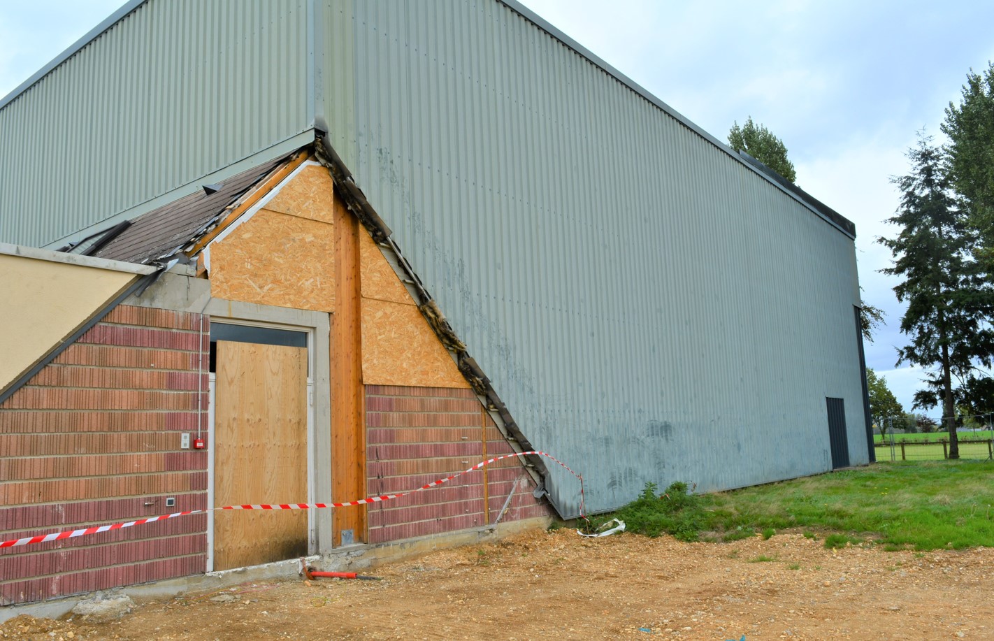 Les travaux commenceront par la dépose de la couverture existante (démontage). La charpente sera renforcée dans le but de recevoir une nouvelle couverture selon les normes actuelles. Un mur rideau (ensemble de fenêtres) sera ajouté sur la façade arrière qui a été détruite pendant le sinistre. Le panneau rayonnant du chauffage sera remplacé tout comme les installations électriques endommagées.