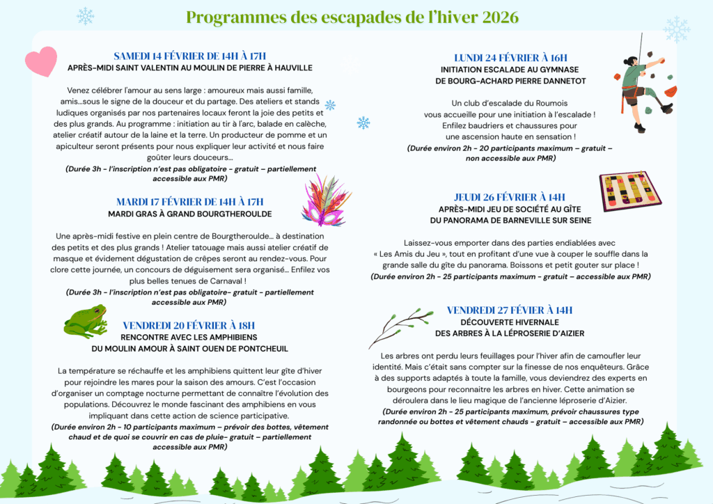 Programmes des escapades de l’hiver 2026
