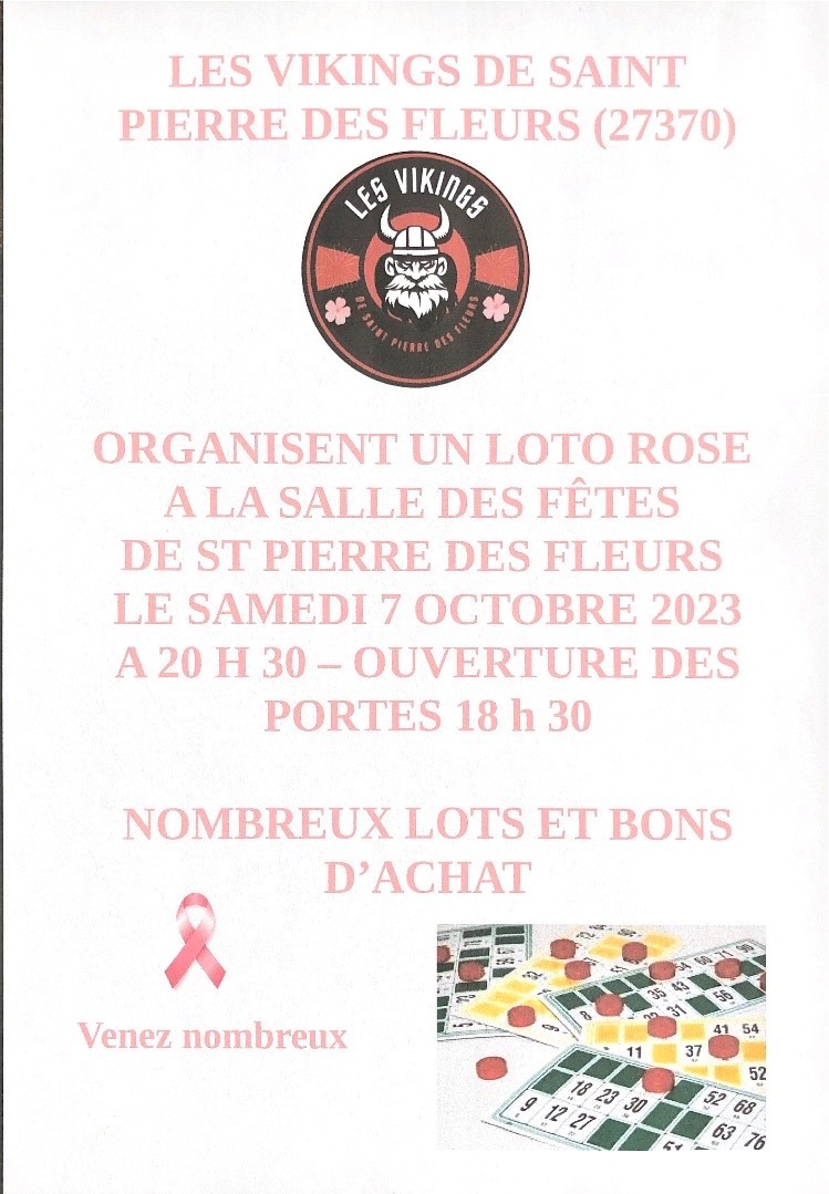 Le samedi 7 octobre, les Vikings de St Pierre des Fleurs organisent un loto rose !