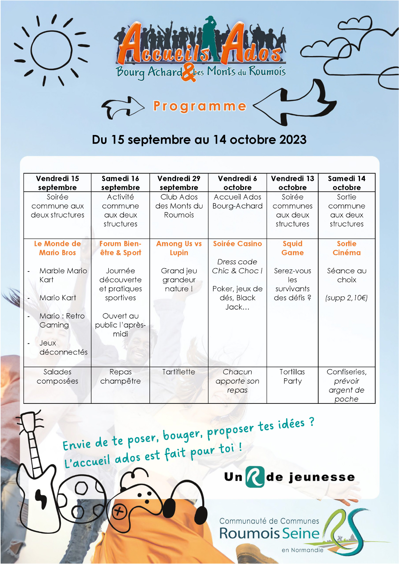 Programme de l’accueil Ados du 15 septembre au 14 octobre 2023 :