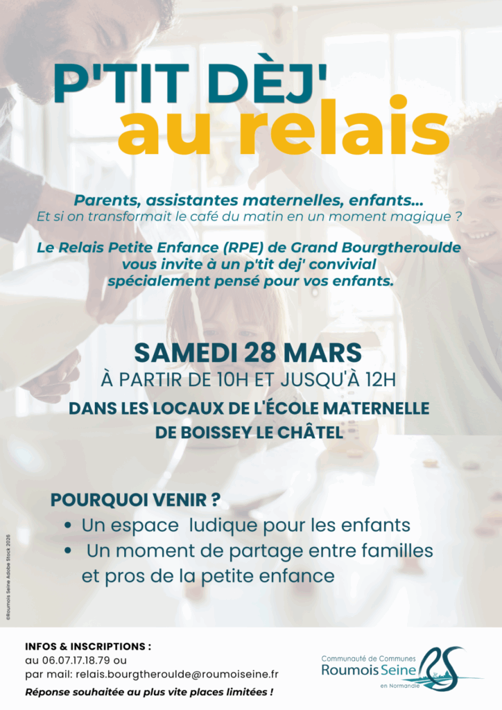 Le Relais Petite Enfance de Grand Bourgtheroulde vous invite à un p’tit déjeuner convivial, spécialement pensé pour les enfants et les familles.