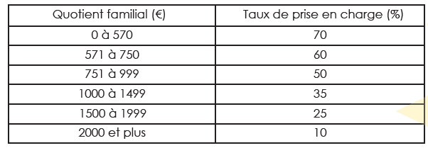 • Taux de prise en charge : 70 % du montant du devis (Quotient familial de 0 à 570€)